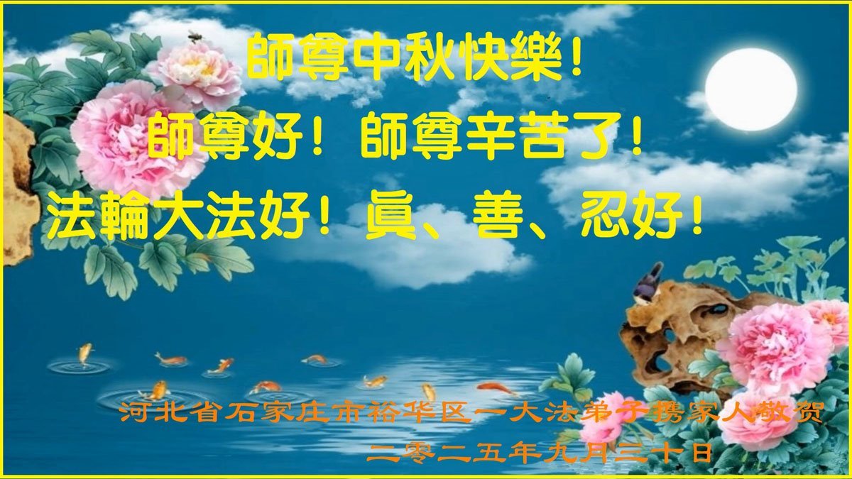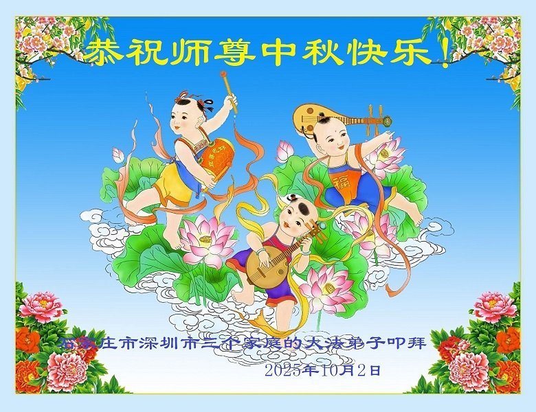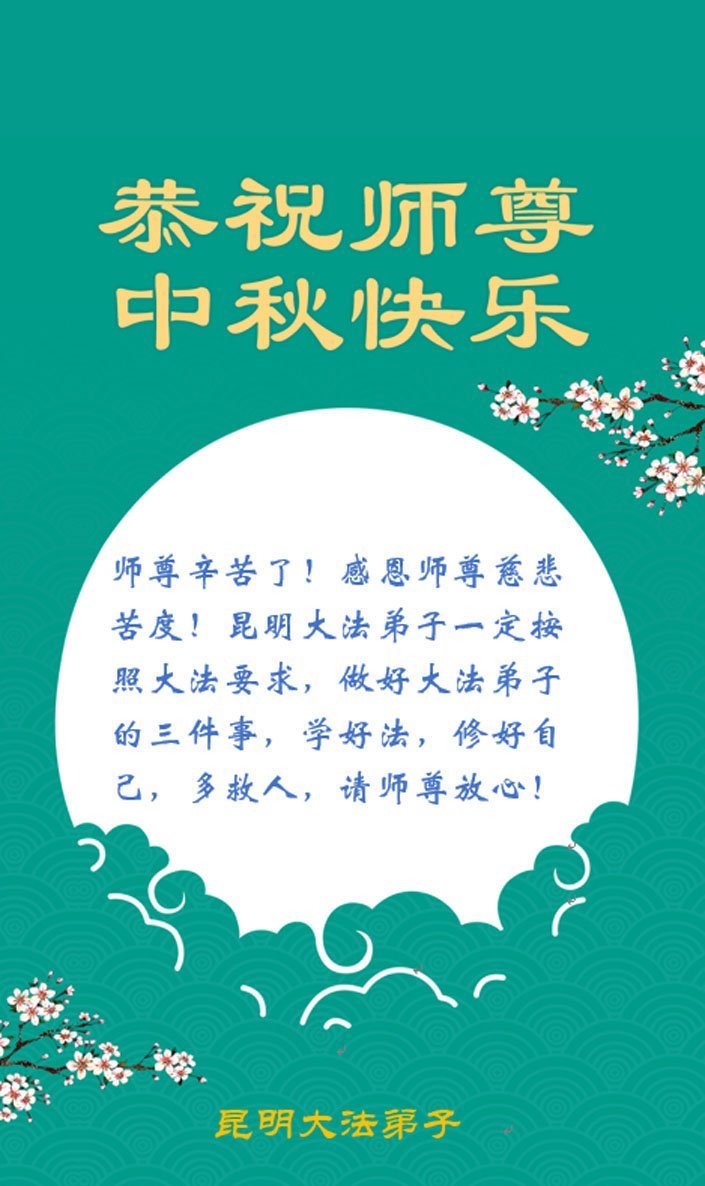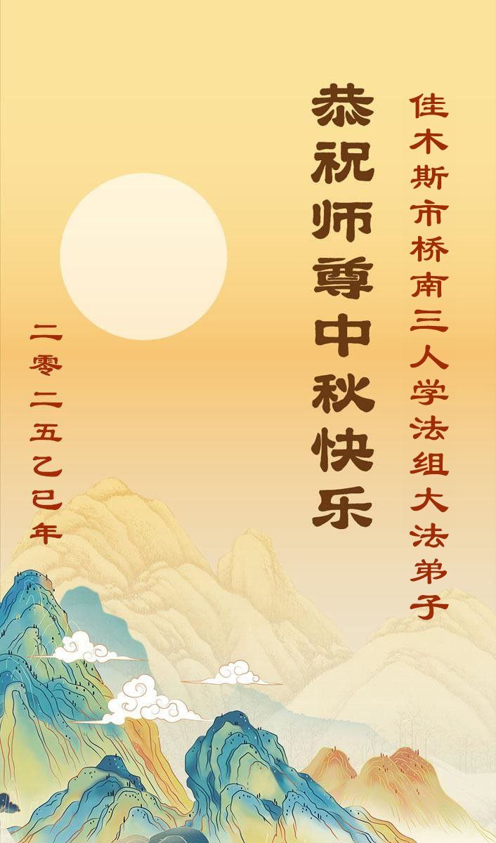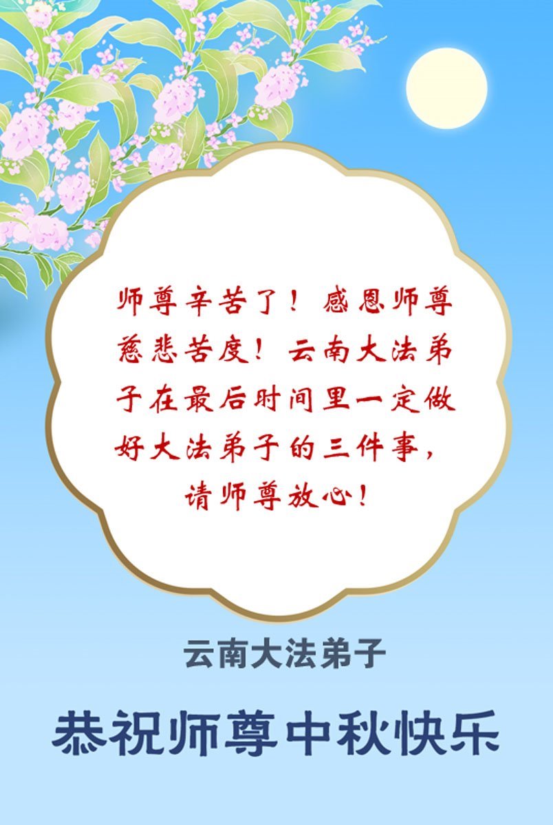 【明慧网二零二五年十月五日】(明慧网通讯员综合报道)海天一碧月儿圆,随师正法在人间。在这中秋佳节万家团圆的日子里,中国大陆各省市大法弟子们万分想念师父,感恩师父!感念师尊亲临世间传大法,赐予众生得救的万古机缘。不管未来的路是艰难还是平坦,弟子们都会义无反顾的紧随师尊,把阳光与希望洒向人间。