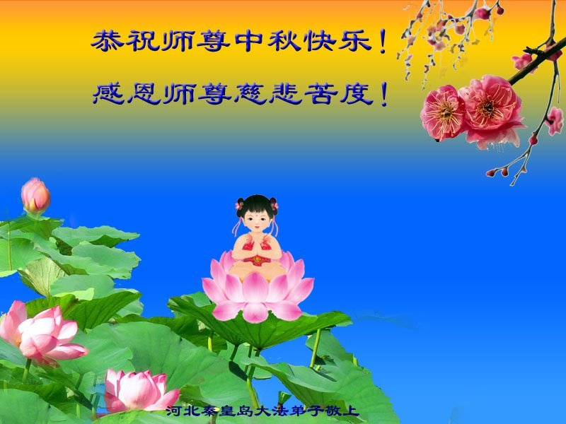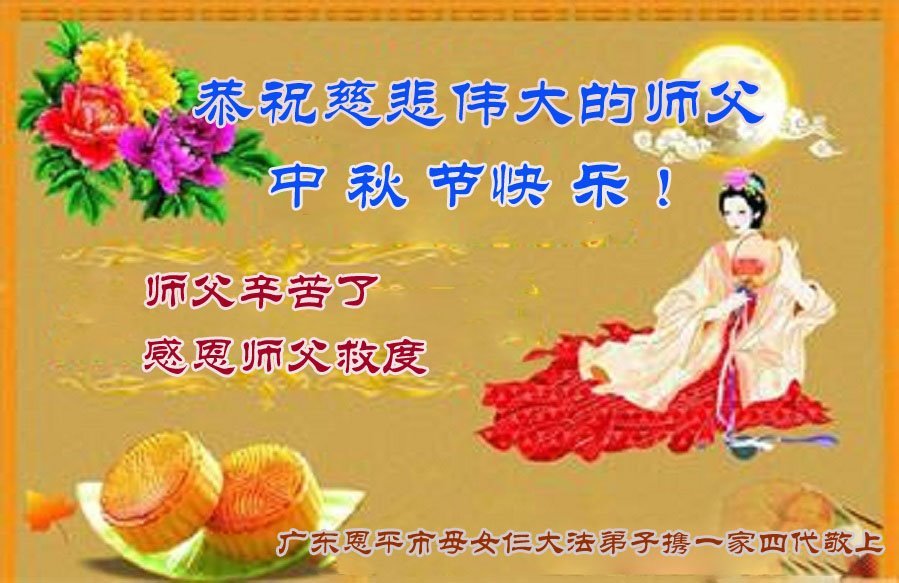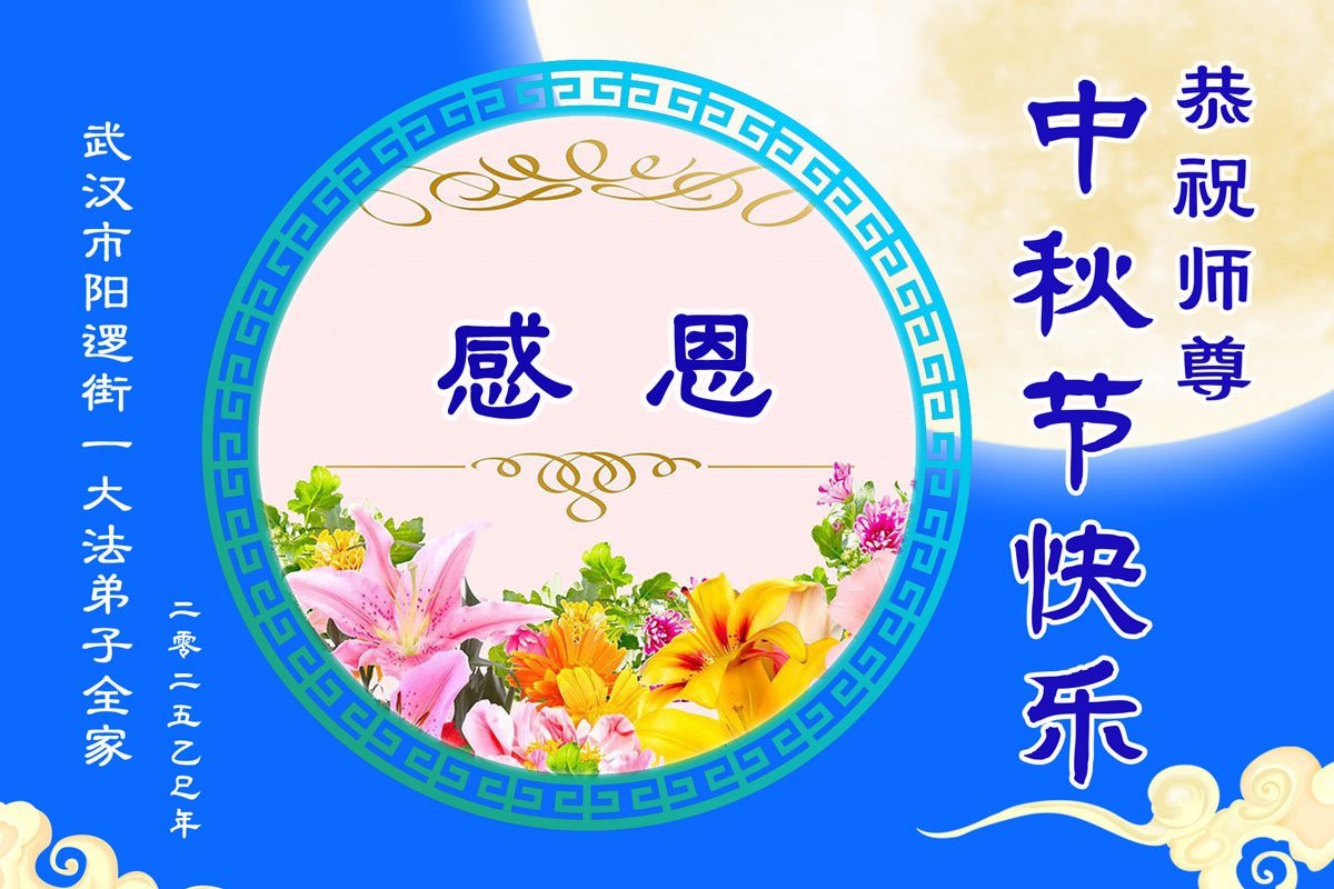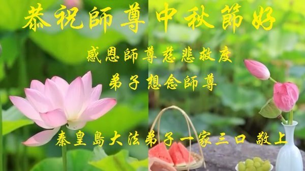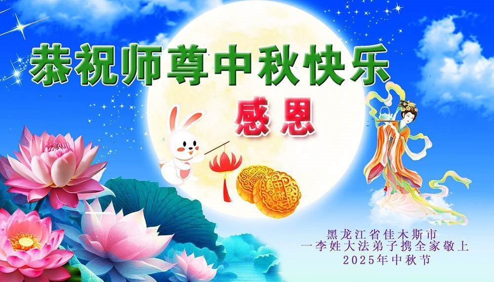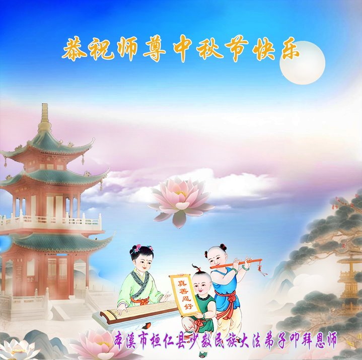 一年一度的中秋来临之际,弟子代全家感恩师尊的慈悲救度!是法轮大法改变了我,让我做一个更好的人。弟子用千言万语也表达不了对师尊的感恩,师父为弟子承受的太多太多,弟子无以回报,只有精進实修,多救人,以报师恩!