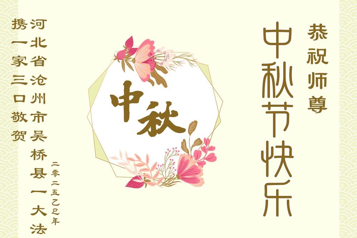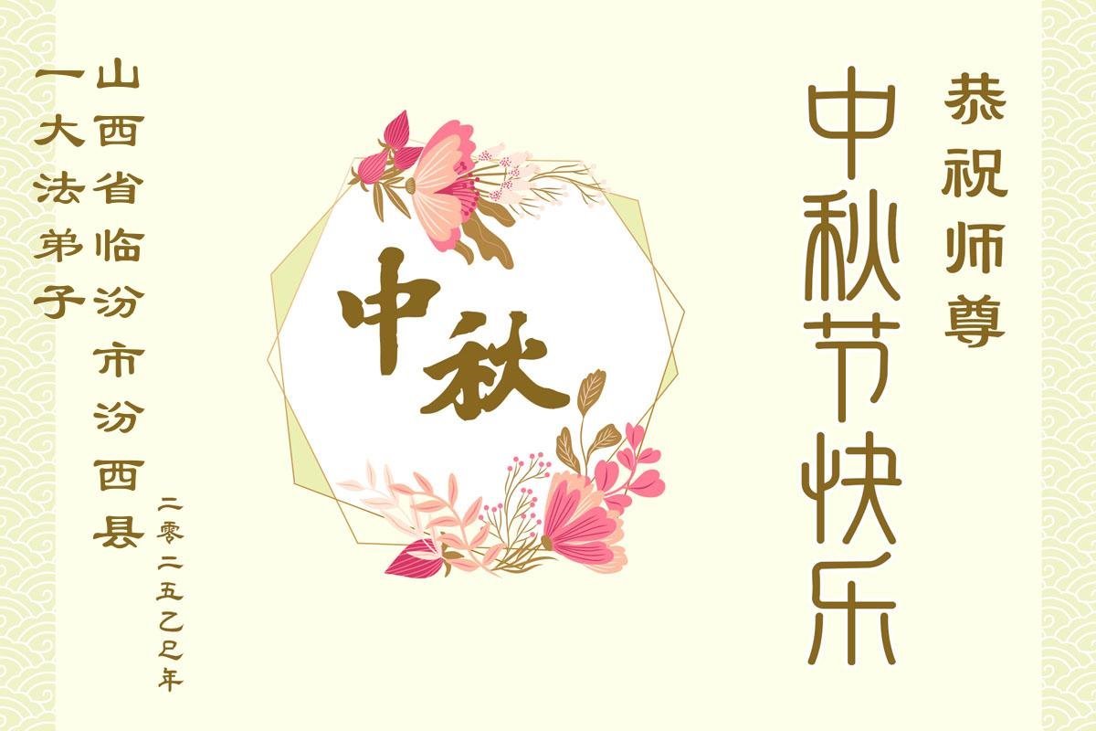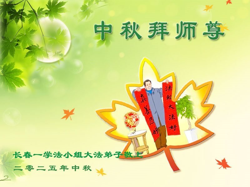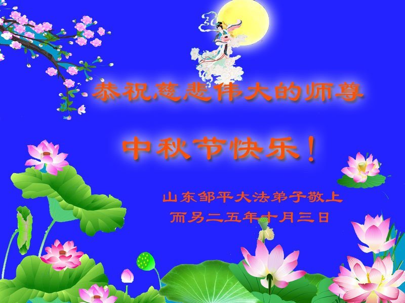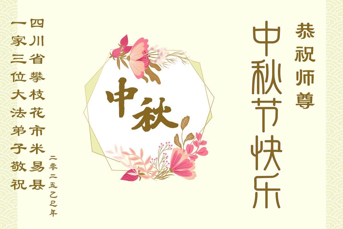 一年一度的中秋来临之际,弟子代全家感恩师尊的慈悲救度!是法轮大法改变了我,让我做一个更好的人。弟子用千言万语也表达不了对师尊的感恩,师父为弟子承受的太多太多,弟子无以回报,只有精進实修,多救人,以报师恩!