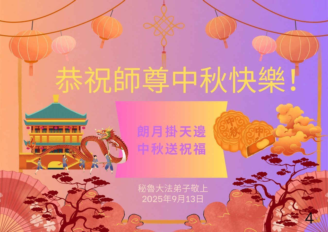 海外大法弟子恭祝师尊中秋好 恭祝师尊中秋节快乐!弟子比学比修,精進不怠,不辜负师尊慈悲苦度!