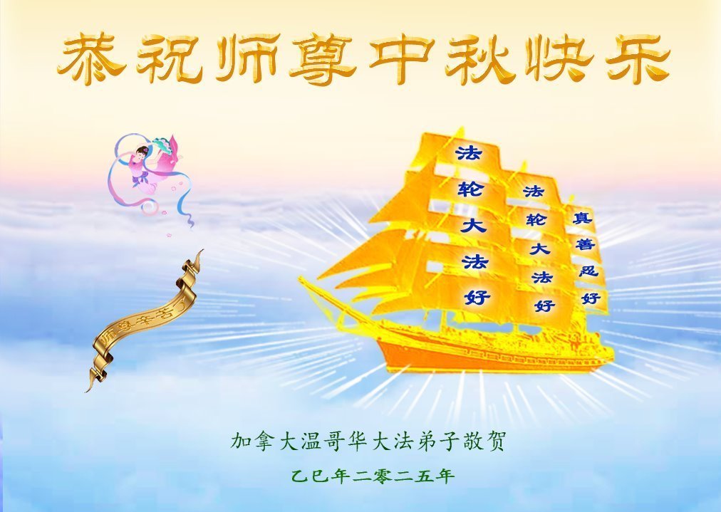 加拿大各地大法弟子恭祝师尊中秋好 加拿大蒙特利尔、多伦多、渥太华、埃德蒙顿、卡尔加里、温哥华、魁北克、红鹿市、爱德华王子岛等地大法弟子恭祝师尊中秋好!