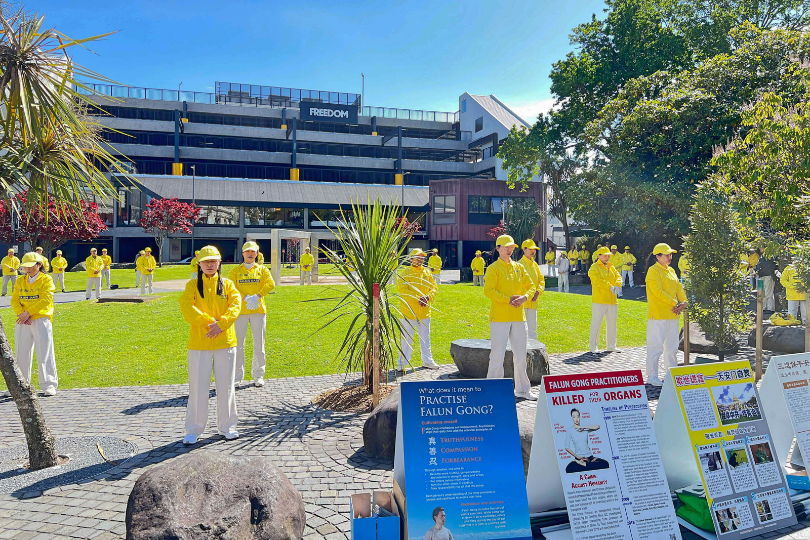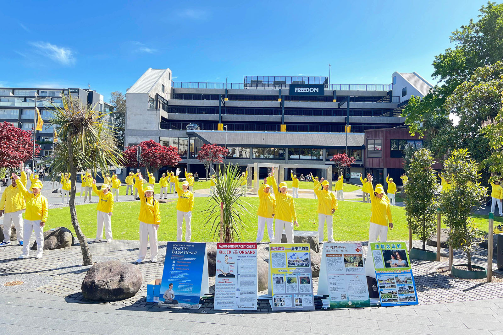 新西兰法轮功学员在商业中心炼功讲真相 【明慧网】