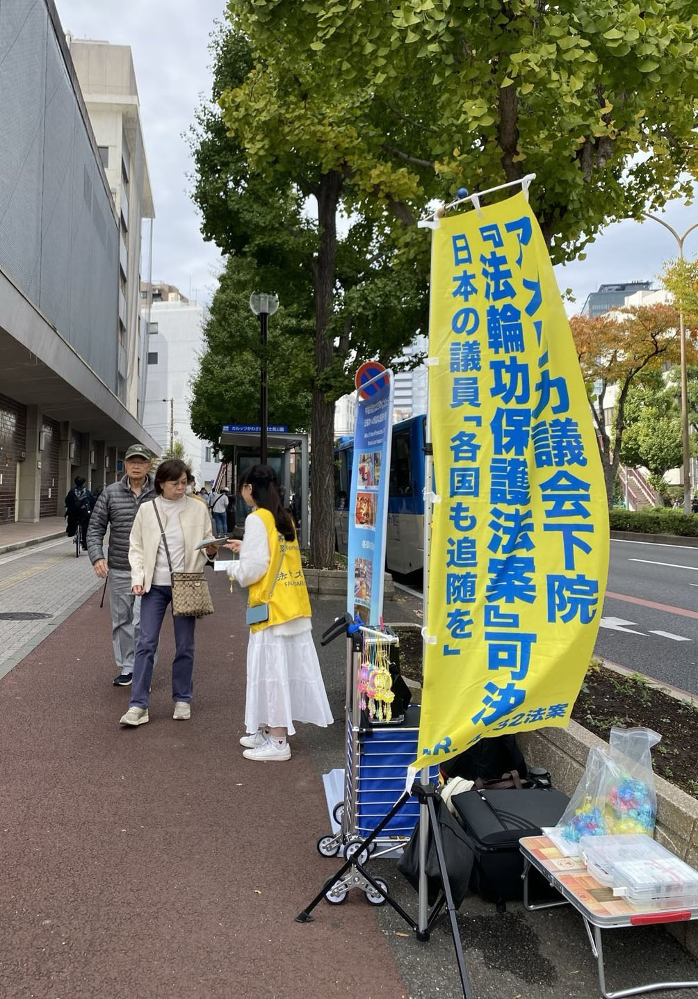 图1~2:法轮功学员在第四十六届“川崎市民节”会场附近讲真相