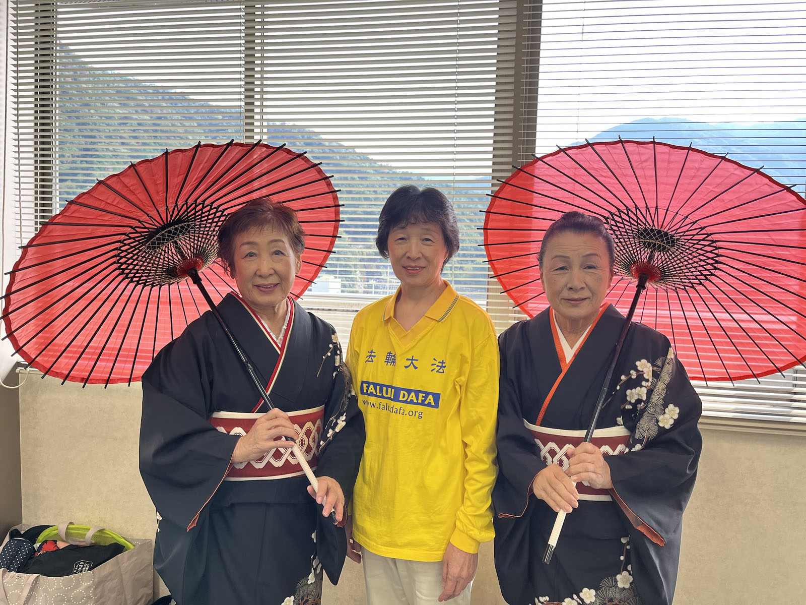 日本民谣团体的赖冈女士和佐佐木女士和法轮功学员交谈后,表示很赞同法轮功。她们还热情地拿出点心招待法轮功学员,并再三邀请学员们到她们的民谣教室做客。