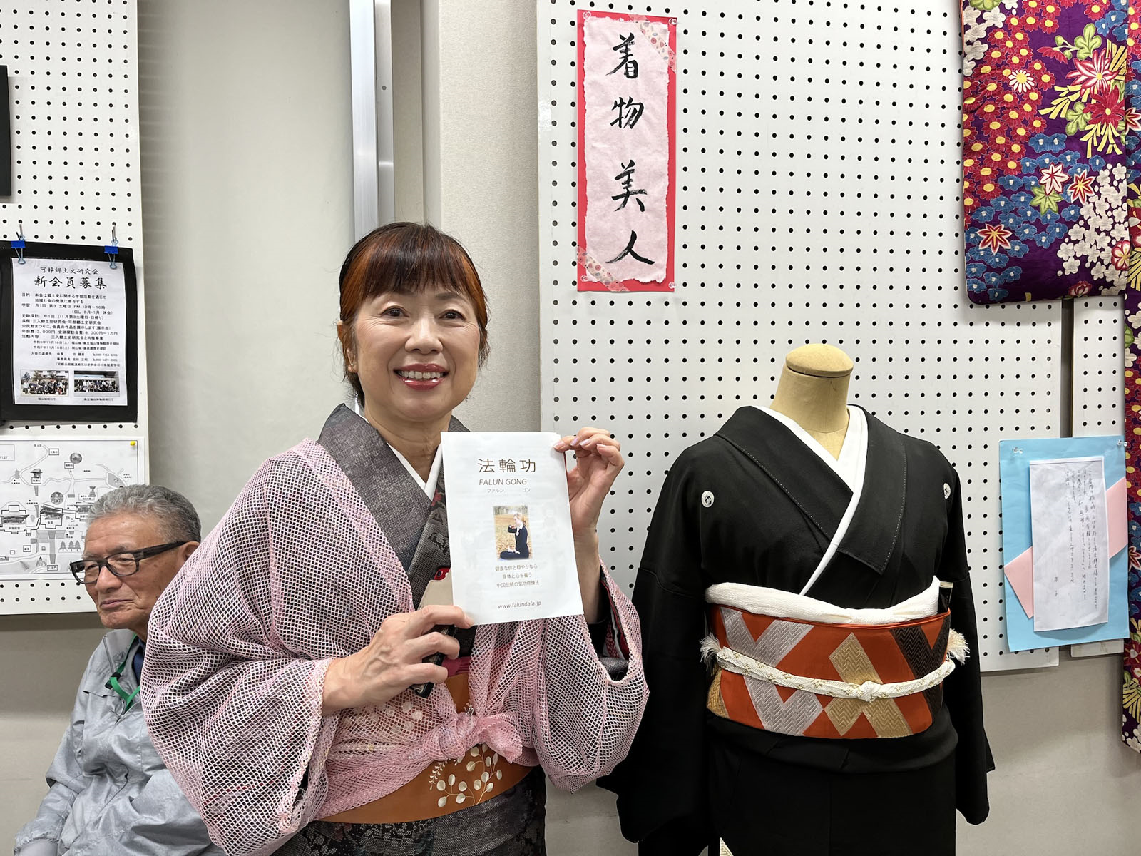 “和服美人”团体的指导教师安田女士听完法轮功学员的介绍后,很赞同真善忍的理念,表示如果赶上休息日,会到可部公民馆的教功教室学功,并和学员交换了联系方式。