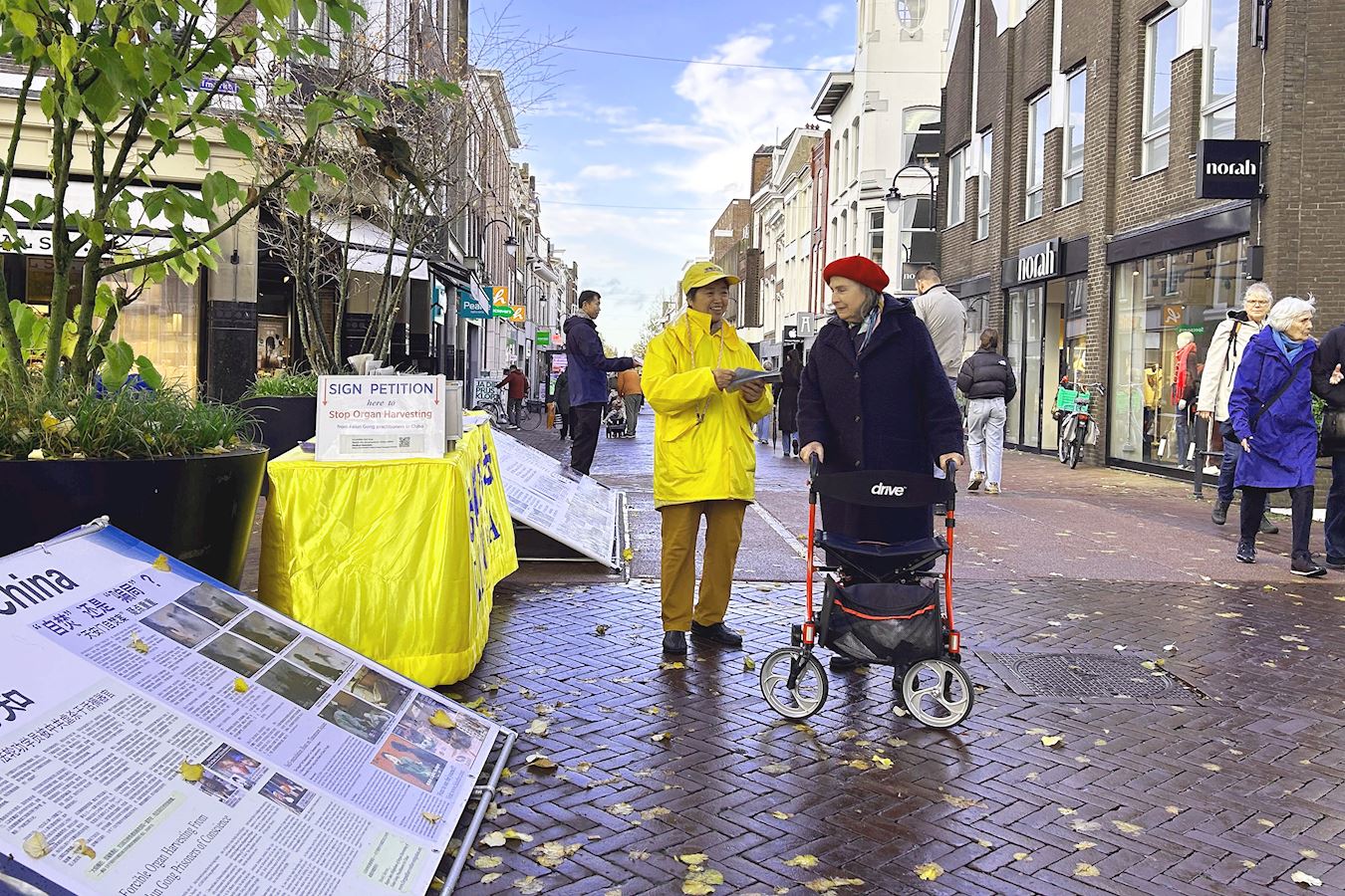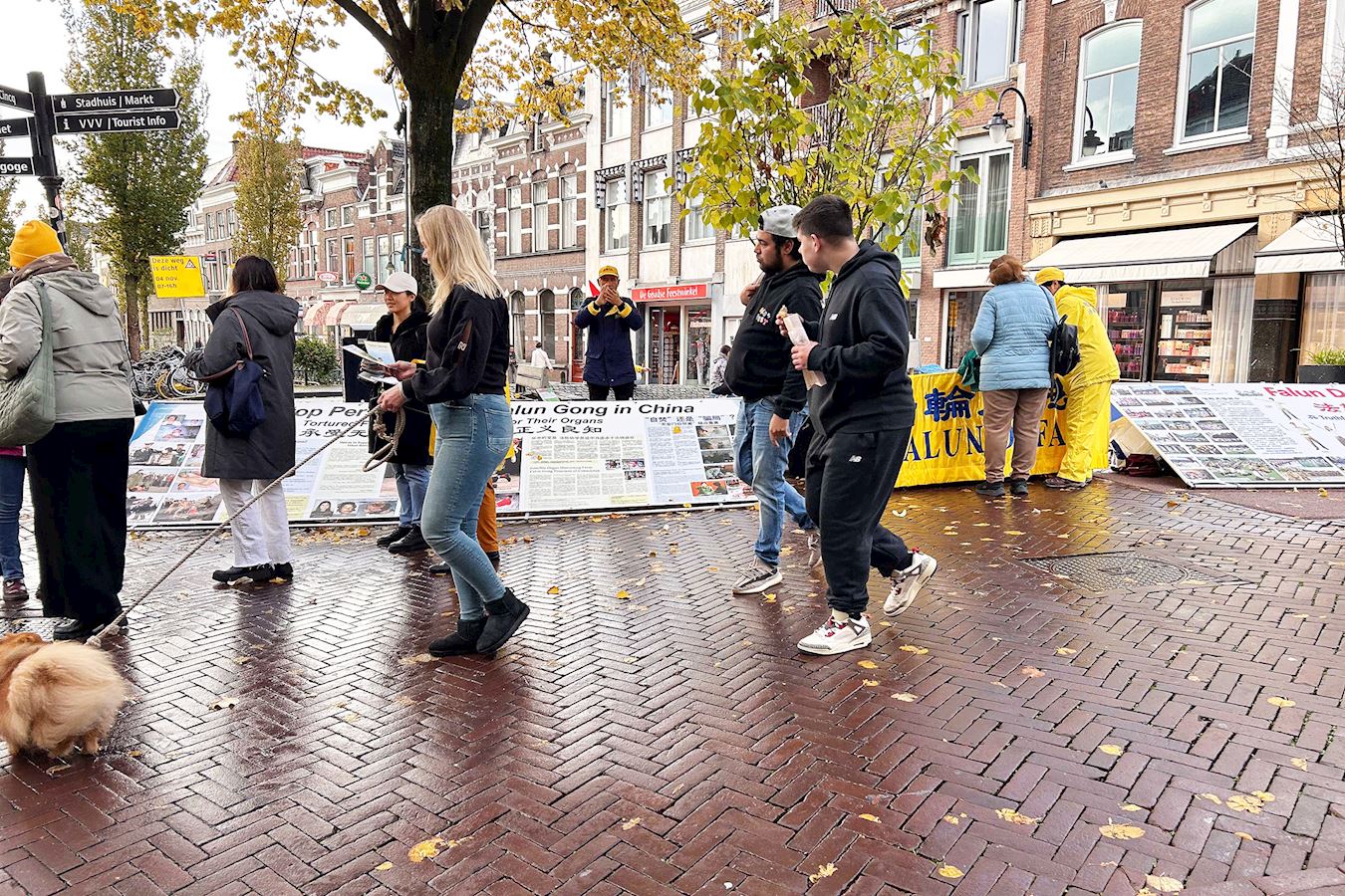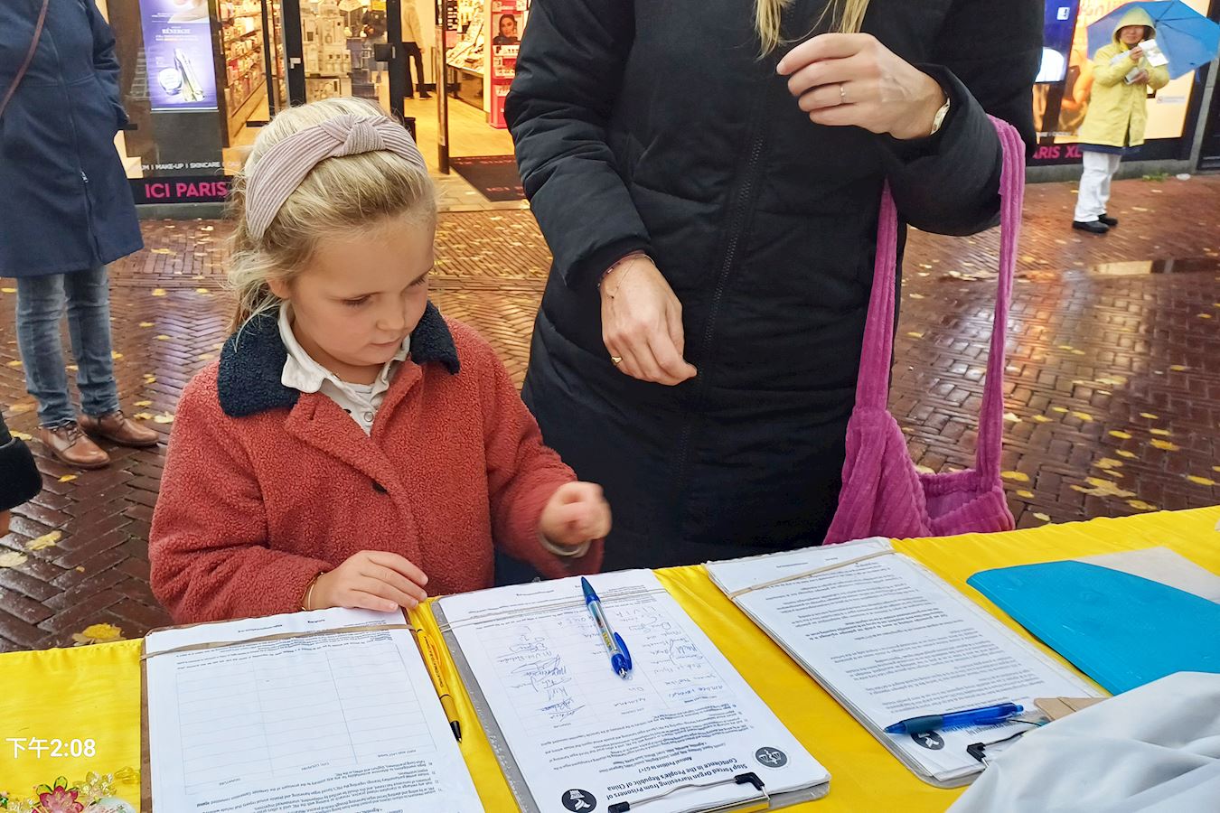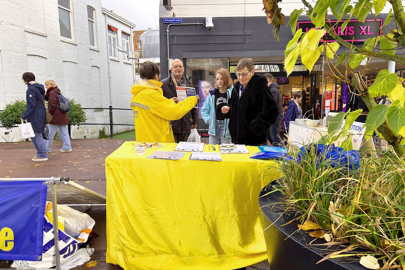 学员给他讲述了从中国传出的法轮大法,使亿万修炼人身心受益,然而从一九九九年七月开始,信仰真善忍的法轮功学员在中国大陆遭受严酷的迫害。听了这些消息,这位先生的表情变得严肃:“我来自美国,是陪妻子来荷兰短期工作的,我从未听说过法轮功被迫害的事情,这太糟糕了!”