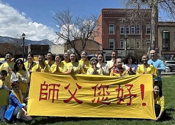 科罗拉多州法轮功学员庆祝世界法轮大法日 五月十日,科罗拉多州法轮功学员在科泉市中心的阿卡西亚公园庆祝第二十六届世界法轮大法日暨法轮大法公开传出三十三周年。